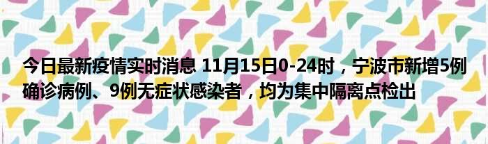 您的位置:首页 >动态频道 > 聚焦疫情 > 今日最新疫情实时消息 11月15日0-24时,宁波市新增5例确诊病例、9例无症状感染者,均为集中隔离点检出 2022-12-05 16:06:22 • 来源: 导读 免责声明:本文由用户上传,如有侵权请联系删除! 上一篇:今日最新疫情实时消息 青海11月15日新增本土确诊2例、本土无症状531例 下一篇:今日最新疫情实时消息 江苏11月15日新增本土确诊病例25例、本土无症状感染者126例