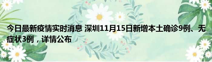 今日最新疫情实时消息 深圳11月15日新增本土确诊9例、无症状3例,详情公布