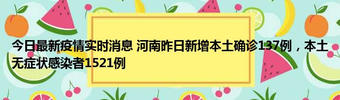 您的位置:首页 >动态频道 > 聚焦疫情 > 今日最新疫情实时消息 河南昨日新增本土确诊137例,本土无症状感染者1521例 2022-12-06 02:14:17 • 来源: 导读 免责声明:本文由用户上传,如有侵权请联系删除! 上一篇:今日最新疫情实时消息 海南海口市新增2例无症状转确诊病例、2例无症状感染者 下一篇:今日最新疫情实时消息 山西太原新增确诊病例8例、无症状感染者56例,详情公布