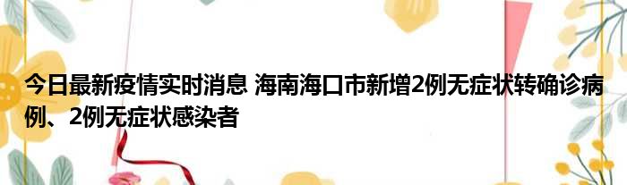 今日最新疫情实时消息 海南海口市新增2例无症状转确诊病例、2例无症状感染者