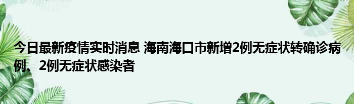 今日最新疫情实时消息 海南海口市新增2例无症状转确诊病例、2例无症状感染者