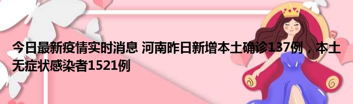 您的位置:首页 >动态频道 > 聚焦疫情 > 今日最新疫情实时消息 河南昨日新增本土确诊137例,本土无症状感染者1521例 2022-12-06 13:48:17 • 来源: 导读 免责声明:本文由用户上传,如有侵权请联系删除! 上一篇:今日最新疫情实时消息 海南海口市新增2例无症状转确诊病例、2例无症状感染者 下一篇:今日最新疫情实时消息 山西太原新增确诊病例8例、无症状感染者56例,详情公布