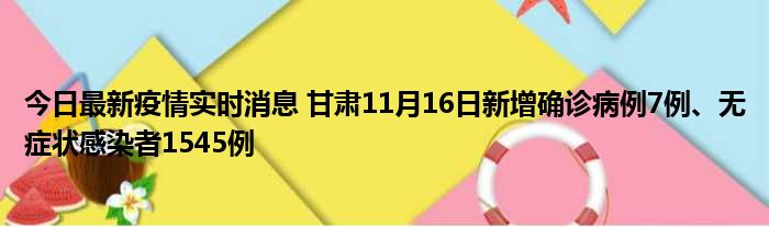 今日最新疫情实时消息 甘肃11月16日新增确诊病例7例、无症状感染者1545例