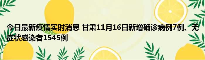 今日最新疫情实时消息 甘肃11月16日新增确诊病例7例、无症状感染者1545例