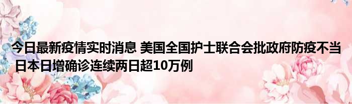 您的位置:首页 >动态频道 > 聚焦疫情 > 今日最新疫情实时消息 美国全国护士联合会批政府防疫不当 日本日增确诊连续两日超10万例 2022-12-07 04:30:22 • 来源: 导读 免责声明:本文由用户上传,如有侵权请联系删除! 上一篇:今日最新疫情实时消息 数据公布,郑州8天新增确诊和无证感染者病例趋势图来了 下一篇:今日最新疫情实时消息 甘肃11月16日新增确诊病例7例、无症状感染者1545例