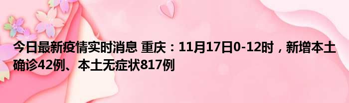 今日最新疫情实时消息 重庆:11月17日0-12时,新增本土确诊42例、本土无症状817例