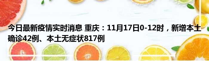 今日最新疫情实时消息 重庆:11月17日0-12时,新增本土确诊42例、本土无症状817例