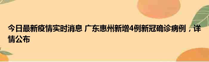 今日最新疫情实时消息 广东惠州新增4例新冠确诊病例,详情公布
