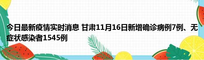 今日最新疫情实时消息 甘肃11月16日新增确诊病例7例、无症状感染者1545例