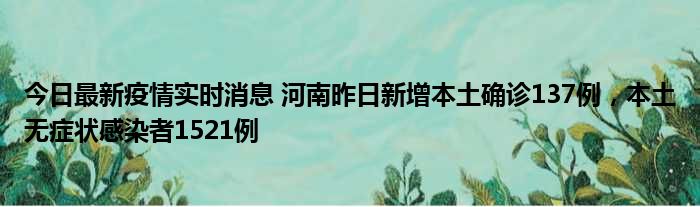 您的位置:首页 >动态频道 > 聚焦疫情 > 今日最新疫情实时消息 河南昨日新增本土确诊137例,本土无症状感染者1521例 2022-12-07 16:34:14 • 来源: 导读 免责声明:本文由用户上传,如有侵权请联系删除! 上一篇:今日最新疫情实时消息 广东惠州新增4例新冠确诊病例,详情公布 下一篇:今日最新疫情实时消息 美国全国护士联合会批政府防疫不当 日本日增确诊连续两日超10万例