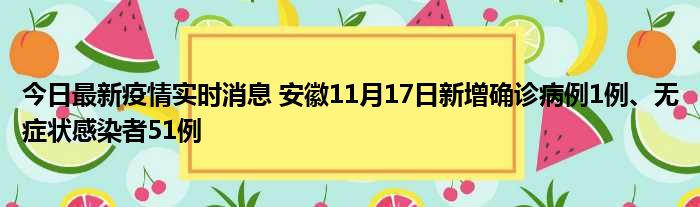 今日最新疫情实时消息 安徽11月17日新增确诊病例1例、无症状感染者51例