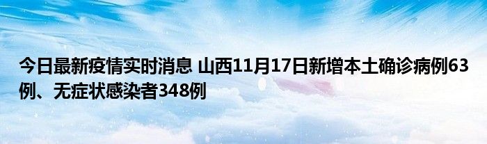 今日最新疫情实时消息 山西11月17日新增本土确诊病例63例、无症状感染者348例