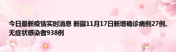 新疆卫健委通报,11月17日0时至24时,新疆维吾尔自治区新增确诊病例27例,新增无症状感染者938例,新增确诊病例治愈出院8例,新增无症状