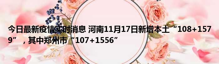 今日最新疫情实时消息 河南11月17日新增本土“108+1579”,其中郑州市“107+1556”