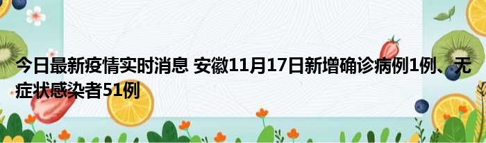 今日最新疫情实时消息 安徽11月17日新增确诊病例1例、无症状感染者51例