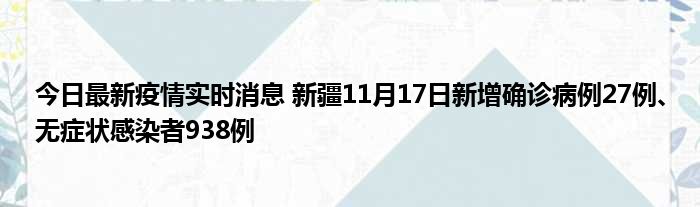 新疆卫健委通报,11月17日0时至24时,新疆维吾尔自治区新增确诊病例27例,新增无症状感染者938例,新增确诊病例治愈出院8例,新增无症状感染者解除隔离医学观察399例