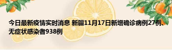 今日最新疫情实时消息 新疆11月17日新增确诊病例27例、无症状感染者938例