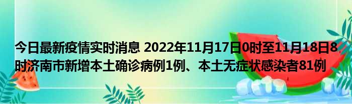 您的位置:首页 >动态频道 > 聚焦疫情 > 今日最新疫情实时消息 2022年11月17日0时至11月18日8时济南市新增本土确诊病例1例、本土无症状感染者81例 2022-12-07 22:24:21 • 来源: 导读 免责声明:本文由用户上传,如有侵权请联系删除! 上一篇:今日最新疫情实时消息 河南昨日新增本土确诊病例108例、本土无症状感染者1579例 下一篇:今日最新疫情实时消息 江苏11月17日新增本土确诊病例21例、本土无症状感染者121例