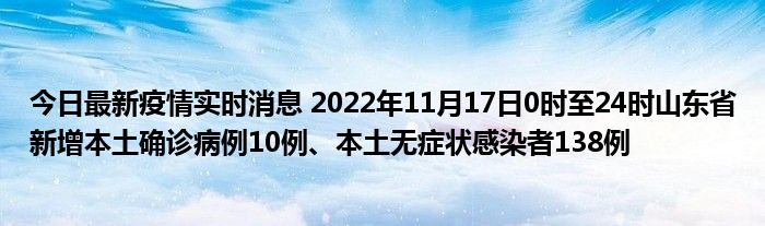 您的位置:首页 >动态频道 > 聚焦疫情 > 今日最新疫情实时消息 2022年11月17日0时至24时山东省新增本土确诊病例10例、本土无症状感染者138例 2022-12-08 06:56:17 • 来源: 导读 免责声明:本文由用户上传,如有侵权请联系删除! 上一篇:今日最新疫情实时消息 陕西11月17日新增74例本土确诊病例、584例本土无症状感染者 下一篇:今日最新疫情实时消息 海南11月17日新增本土确诊病例2例、本土无症状感染者7例
