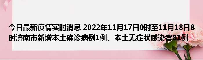 您的位置:首页 >动态频道 > 聚焦疫情 > 今日最新疫情实时消息 2022年11月17日0时至11月18日8时济南市新增本土确诊病例1例、本土无症状感染者81例 2022-12-08 07:44:20 • 来源: 导读 免责声明:本文由用户上传,如有侵权请联系删除! 上一篇:今日最新疫情实时消息 河南昨日新增本土确诊病例108例、本土无症状感染者1579例 下一篇:今日最新疫情实时消息 江苏11月17日新增本土确诊病例21例、本土无症状感染者121例