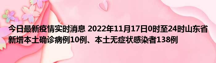 您的位置:首页 >动态频道 > 聚焦疫情 > 今日最新疫情实时消息 2022年11月17日0时至24时山东省新增本土确诊病例10例、本土无症状感染者138例 2022-12-08 08:56:19 • 来源: 导读 免责声明:本文由用户上传,如有侵权请联系删除! 上一篇:今日最新疫情实时消息 陕西11月17日新增74例本土确诊病例、584例本土无症状感染者 下一篇:今日最新疫情实时消息 海南11月17日新增本土确诊病例2例、本土无症状感染者7例
