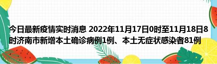 您的位置:首页 >动态频道 > 聚焦疫情 > 今日最新疫情实时消息 2022年11月17日0时至11月18日8时济南市新增本土确诊病例1例、本土无症状感染者81例 2022-12-08 09:24:19 • 来源: 导读 免责声明:本文由用户上传,如有侵权请联系删除! 上一篇:今日最新疫情实时消息 河南昨日新增本土确诊病例108例、本土无症状感染者1579例 下一篇:今日最新疫情实时消息 江苏11月17日新增本土确诊病例21例、本土无症状感染者121例