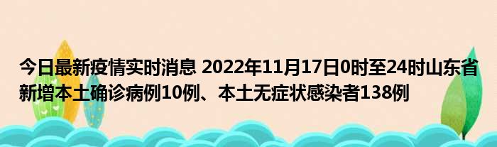 您的位置:首页 >动态频道 > 聚焦疫情 > 今日最新疫情实时消息 2022年11月17日0时至24时山东省新增本土确诊病例10例、本土无症状感染者138例 2022-12-08 09:56:18 • 来源: 导读 免责声明:本文由用户上传,如有侵权请联系删除! 上一篇:今日最新疫情实时消息 陕西11月17日新增74例本土确诊病例、584例本土无症状感染者 下一篇:今日最新疫情实时消息 海南11月17日新增本土确诊病例2例、本土无症状感染者7例