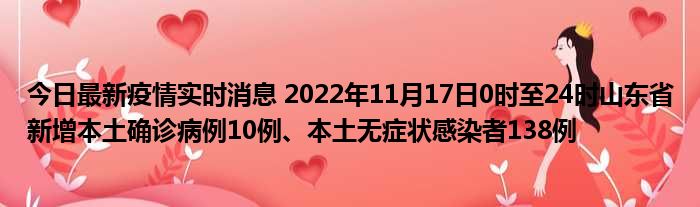 您的位置:首页 >动态频道 > 聚焦疫情 > 今日最新疫情实时消息 2022年11月17日0时至24时山东省新增本土确诊病例10例、本土无症状感染者138例 2022-12-08 10:56:18 • 来源: 导读 免责声明:本文由用户上传,如有侵权请联系删除! 上一篇:今日最新疫情实时消息 陕西11月17日新增74例本土确诊病例、584例本土无症状感染者 下一篇:今日最新疫情实时消息 海南11月17日新增本土确诊病例2例、本土无症状感染者7例