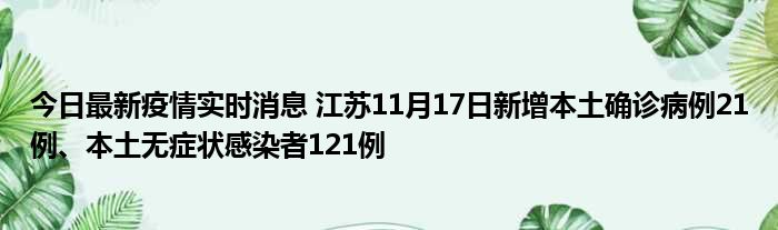 今日最新疫情实时消息 江苏11月17日新增本土确诊病例21例、本土无症状感染者121例
