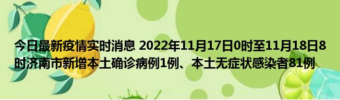 您的位置:首页 >动态频道 > 聚焦疫情 > 今日最新疫情实时消息 2022年11月17日0时至11月18日8时济南市新增本土确诊病例1例、本土无症状感染者81例 2022-12-08 14:40:16 • 来源: 导读 免责声明:本文由用户上传,如有侵权请联系删除! 上一篇:今日最新疫情实时消息 陕西11月17日新增74例本土确诊病例、584例本土无症状感染者 下一篇:今日最新疫情实时消息 江苏11月17日新增本土确诊病例21例、本土无症状感染者121例
