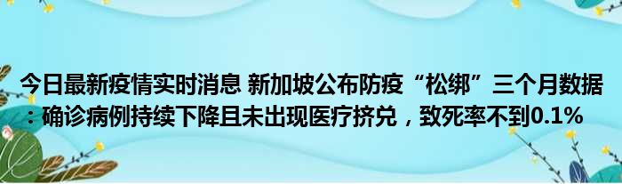 您的位置:首页 >动态频道 > 聚焦疫情 > 今日最新疫情实时消息 新加坡公布防疫“松绑”三个月数据:确诊病例持续下降且未出现医疗挤兑,致死率不到0.1% 2022-12-08 15:32:18 • 来源: 导读 免责声明:本文由用户上传,如有侵权请联系删除! 上一篇:今日最新疫情实时消息 浙江11月17日新增本土确诊病例16例、本土无症状感染者34例 下一篇:今日最新疫情实时消息 广东中山新增1例确诊病例和2例无症状感染者