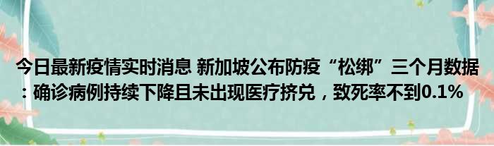 您的位置:首页 >动态频道 > 聚焦疫情 > 今日最新疫情实时消息 新加坡公布防疫“松绑”三个月数据:确诊病例持续下降且未出现医疗挤兑,致死率不到0.1% 2022-12-08 19:12:21 • 来源: 导读 免责声明:本文由用户上传,如有侵权请联系删除! 上一篇:今日最新疫情实时消息 浙江11月17日新增本土确诊病例16例、本土无症状感染者34例 下一篇:今日最新疫情实时消息 广东中山新增1例确诊病例和2例无症状感染者