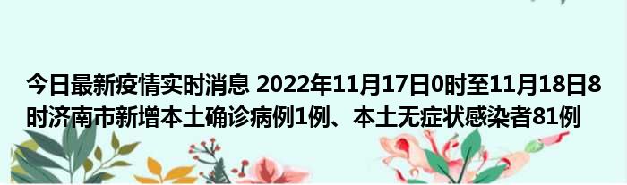 您的位置:首页 >动态频道 > 聚焦疫情 > 今日最新疫情实时消息 2022年11月17日0时至11月18日8时济南市新增本土确诊病例1例、本土无症状感染者81例 2022-12-12 17:46:16 • 来源: 导读 免责声明:本文由用户上传,如有侵权请联系删除! 上一篇:今日最新疫情实时消息 河南昨日新增本土确诊病例108例、本土无症状感染者1579例 下一篇:今日最新疫情实时消息 江苏11月17日新增本土确诊病例21例、本土无症状感染者121例