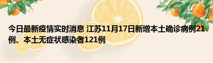 今日最新疫情实时消息 江苏11月17日新增本土确诊病例21例、本土无症状感染者121例