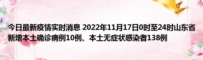 您的位置:首页 >动态频道 > 聚焦疫情 > 今日最新疫情实时消息 2022年11月17日0时至24时山东省新增本土确诊病例10例、本土无症状感染者138例 2022-12-12 20:18:21 • 来源: 导读 免责声明:本文由用户上传,如有侵权请联系删除! 上一篇:今日最新疫情实时消息 新疆克州阿图什市新增1例确诊病例、11例无症状感染者 下一篇:今日最新疫情实时消息 新疆乌鲁木齐市新增确诊病例18例、无症状感染者505例