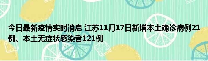 今日最新疫情实时消息 江苏11月17日新增本土确诊病例21例、本土无症状感染者121例