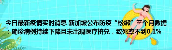 您的位置:首页 >动态频道 > 聚焦疫情 > 今日最新疫情实时消息 新加坡公布防疫“松绑”三个月数据:确诊病例持续下降且未出现医疗挤兑,致死率不到0.1% 2022-12-12 22:54:19 • 来源: 导读 免责声明:本文由用户上传,如有侵权请联系删除! 上一篇:今日最新疫情实时消息 2022年11月17日0时至11月18日8时济南市新增本土确诊病例1例、本土无症状感染者81例 下一篇:今日最新疫情实时消息 广东中山新增1例确诊病例和2例无症状感染者
