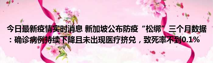 您的位置:首页 >动态频道 > 聚焦疫情 > 今日最新疫情实时消息 新加坡公布防疫“松绑”三个月数据:确诊病例持续下降且未出现医疗挤兑,致死率不到0.1% 2022-12-12 23:54:22 • 来源: 导读 免责声明:本文由用户上传,如有侵权请联系删除! 上一篇:今日最新疫情实时消息 2022年11月17日0时至11月18日8时济南市新增本土确诊病例1例、本土无症状感染者81例 下一篇:今日最新疫情实时消息 广东中山新增1例确诊病例和2例无症状感染者