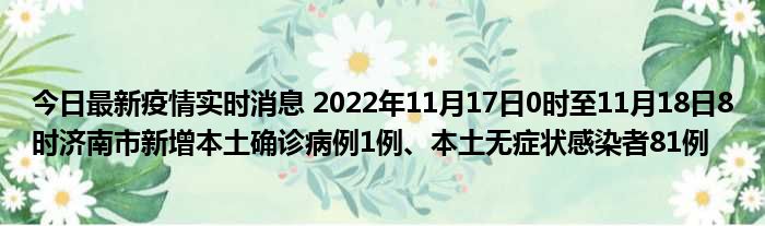 您的位置:首页 >动态频道 > 聚焦疫情 > 今日最新疫情实时消息 2022年11月17日0时至11月18日8时济南市新增本土确诊病例1例、本土无症状感染者81例 2022-12-13 02:32:15 • 来源: 导读 免责声明:本文由用户上传,如有侵权请联系删除! 上一篇:今日最新疫情实时消息 河南昨日新增本土确诊病例108例、本土无症状感染者1579例 下一篇:今日最新疫情实时消息 新加坡公布防疫“松绑”三个月数据:确诊病例持续下降且未出现医疗挤兑,致死率不到0.1%