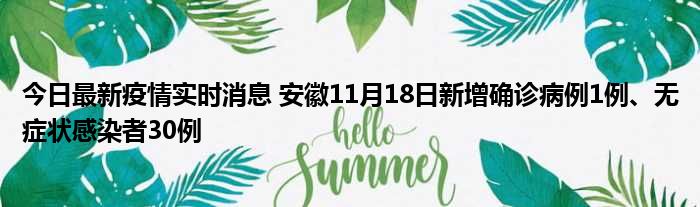 今日最新疫情实时消息 安徽11月18日新增确诊病例1例、无症状感染者30例