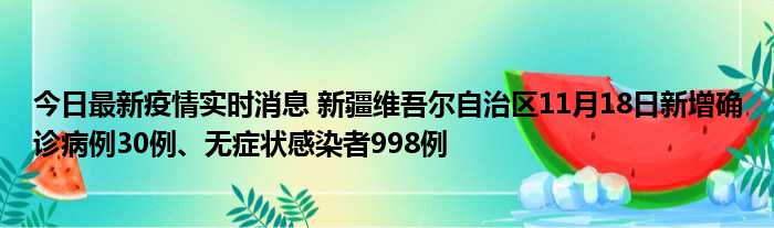 新疆卫健委通报,11月18日0时至24时,新疆维吾尔自治区新增确诊病例30例,新增无症状感染者998例,新增确诊病例治愈出院13例,新增无症状
