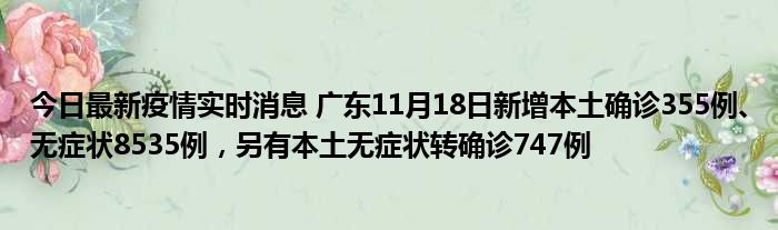今日最新疫情实时消息 广东11月18日新增本土确诊355例、无症状8535例,另有本土无症状转确诊747例