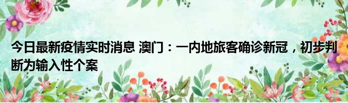 今日最新疫情实时消息 澳门:一内地旅客确诊新冠,初步判断为输入性个案