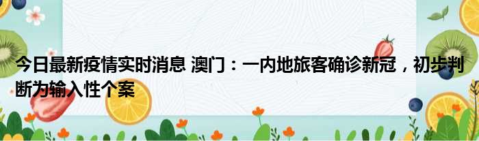 今日最新疫情实时消息 澳门:一内地旅客确诊新冠,初步判断为输入性个案
