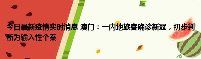 今日最新疫情实时消息 澳门:一内地旅客确诊新冠,初步判断为输入性个案