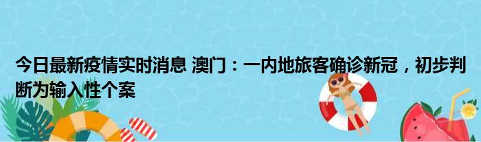 今日最新疫情实时消息 澳门:一内地旅客确诊新冠,初步判断为输入性个案