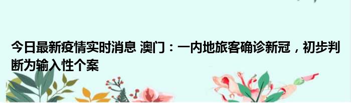 今日最新疫情实时消息 澳门:一内地旅客确诊新冠,初步判断为输入性个案