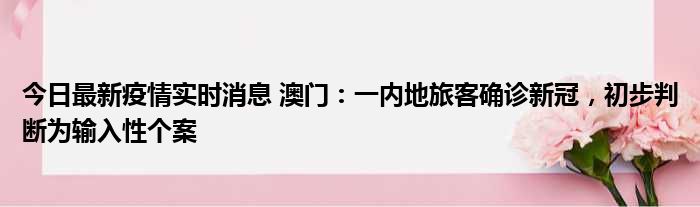 今日最新疫情实时消息 澳门:一内地旅客确诊新冠,初步判断为输入性个案