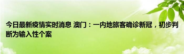 今日最新疫情实时消息 澳门:一内地旅客确诊新冠,初步判断为输入性个案