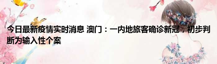 今日最新疫情实时消息 澳门:一内地旅客确诊新冠,初步判断为输入性个案